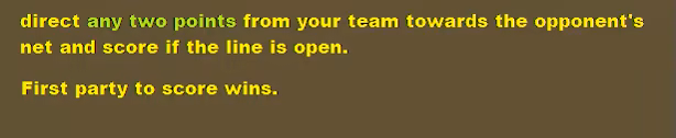 Simply direct any two points from your team towards the opponent's net and score if the line is open.