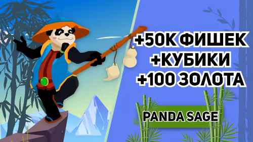 После покупки данного контента вы получаете в свою коллекцию персонажа "Панда мудрец", "Кубики Панда с бамбуком", а также 100 золотых и 50.000 фишек.