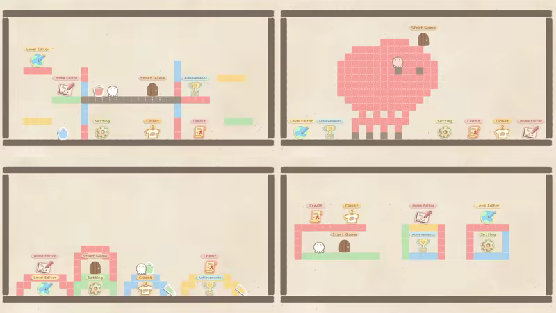Each Gimmick can change Moonie’s color, move Moonie around, and add more fun to the puzzles. Experience the various Gimmicks and solve puzzles using them!