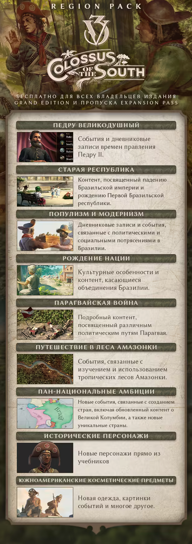 Victoria 3: Colossus of the South — это набор, в котором вас ждут: