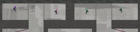 What if ninjas fought in a trampoline park, but with paint? Ninjas on Trampolines is a two-to-four player platform fighter where players are ninjas that splatter their opponents on the battlefield. Use trampolines to fight for aerial superiority. Having the most paint on the battlefield will make you victorious, but be careful because your opponents can paint over what you have already. The person with the most paint at the end of a match is declared the winner.