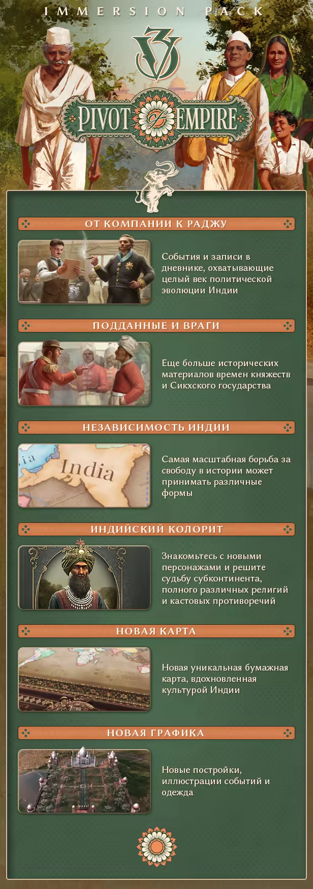 Pivot of Empire освещает общественную эволюцию Индии от правления частной компании до зарождения движения за независимость. Ведите разнообразные культуры индийского субконтинента к процветанию и свободе. Сокровище Короны ждут большие перемены.