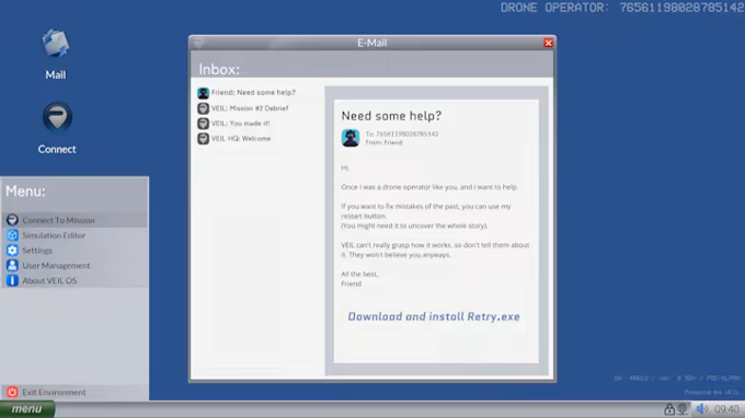 Use desktop environment called VEIL OS to connect to your missions and to navigate through conspiracies in reality-bending meta-gameplay.