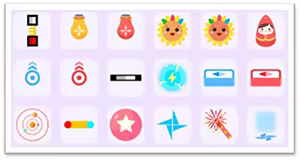 18 unique items (including buffs and debuffs), adding a number of items associated with mouth movements to the functionality of traditional brick-fighting games.