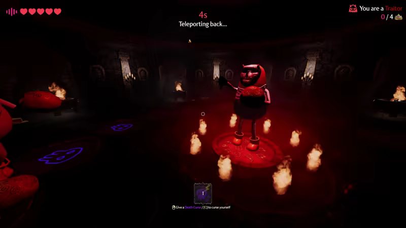 Once you're done being nice and "teamworky", it's time to take things to another level with the Traitor Mode. Traitors have the two special abilities: see the health and death curses of the Companions and give death curses to anyone. Find the Traitors before they take you out. Call for an 'Emergency Meeting' and vote the Traitor out!