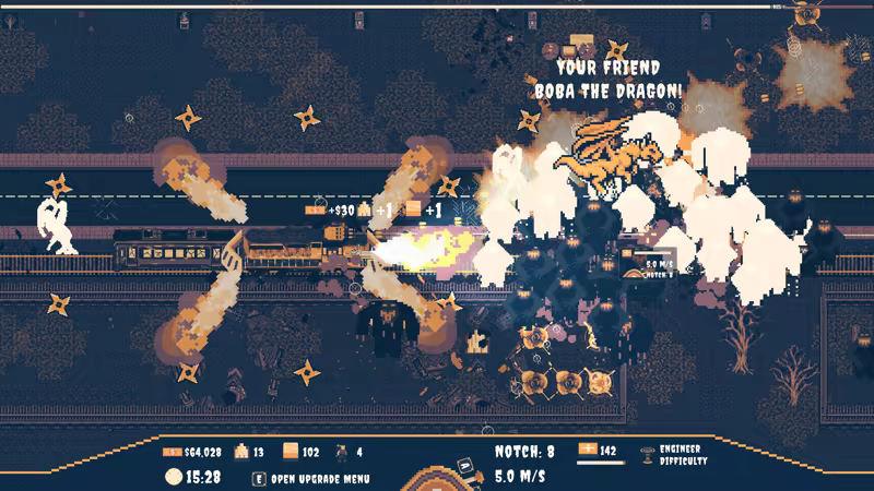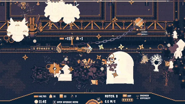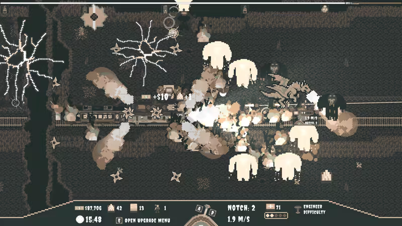 Choo Choo Survivor 2 blends horde survival and strategic upgrades in a unique experience inspired by games like Vampire Survivors and Dome Keeper, while carving out its own intense, locomotive-driven gameplay.
