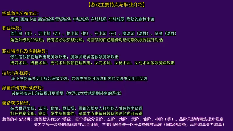 (关于挂机方向的特别说明:本作可以在山洞或者秘境中使用雪镇井中获得的唤魔笛挂机,也可以在菜单中选择自动副本挂机,也可以与稻草人对话挂机,后期也可以自动爬登仙塔,也可以重置登仙塔级别用来挂机。