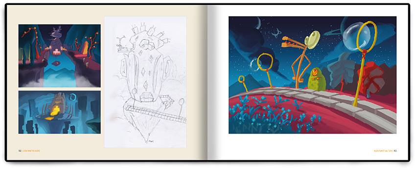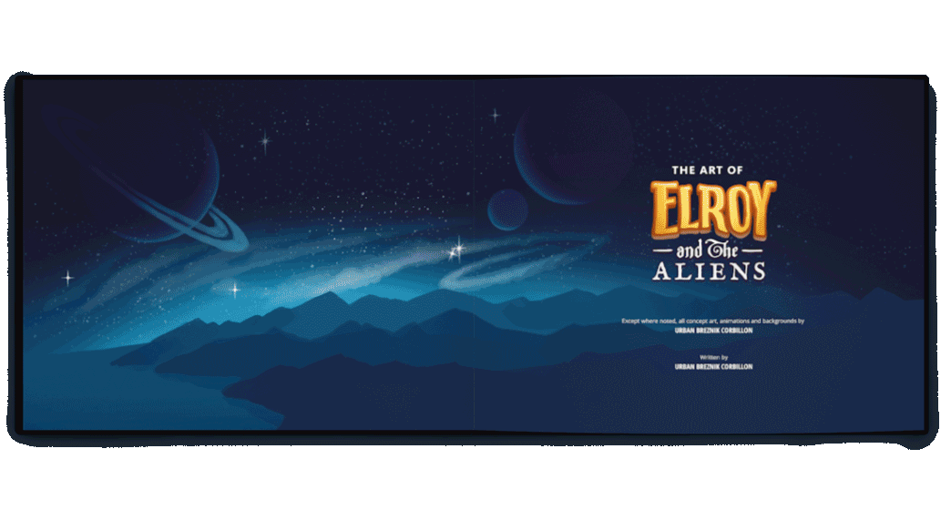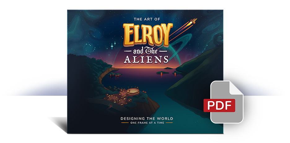 The Art of Elroy and the Aliens is a comprehensive visual look at the game's creation, from start to finish. This digital Artbook touches upon the development of the characters, backgrounds, and storytelling. In its pages, you will find early pencil sketches, digital paintings, character design, frame-by-frame animations, and more. It's accompanied by stories and anecdotes behind the game's production.