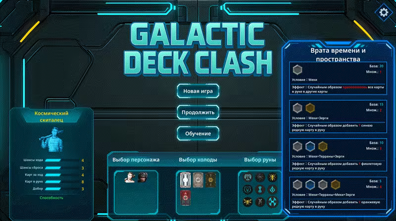 Выбирайте персонажей, колоды и руны, чтобы начать захватывающее карточное приключение!
