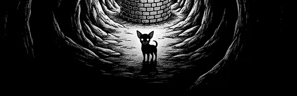 You are Black, a small black mutt who wakes up at the bottom of a well in the middle of a storm. Confused and frightened, she claws her way back to the garden, eager to return to her family — only to find the house empty, her scent fading, and shadows moving through the rain.