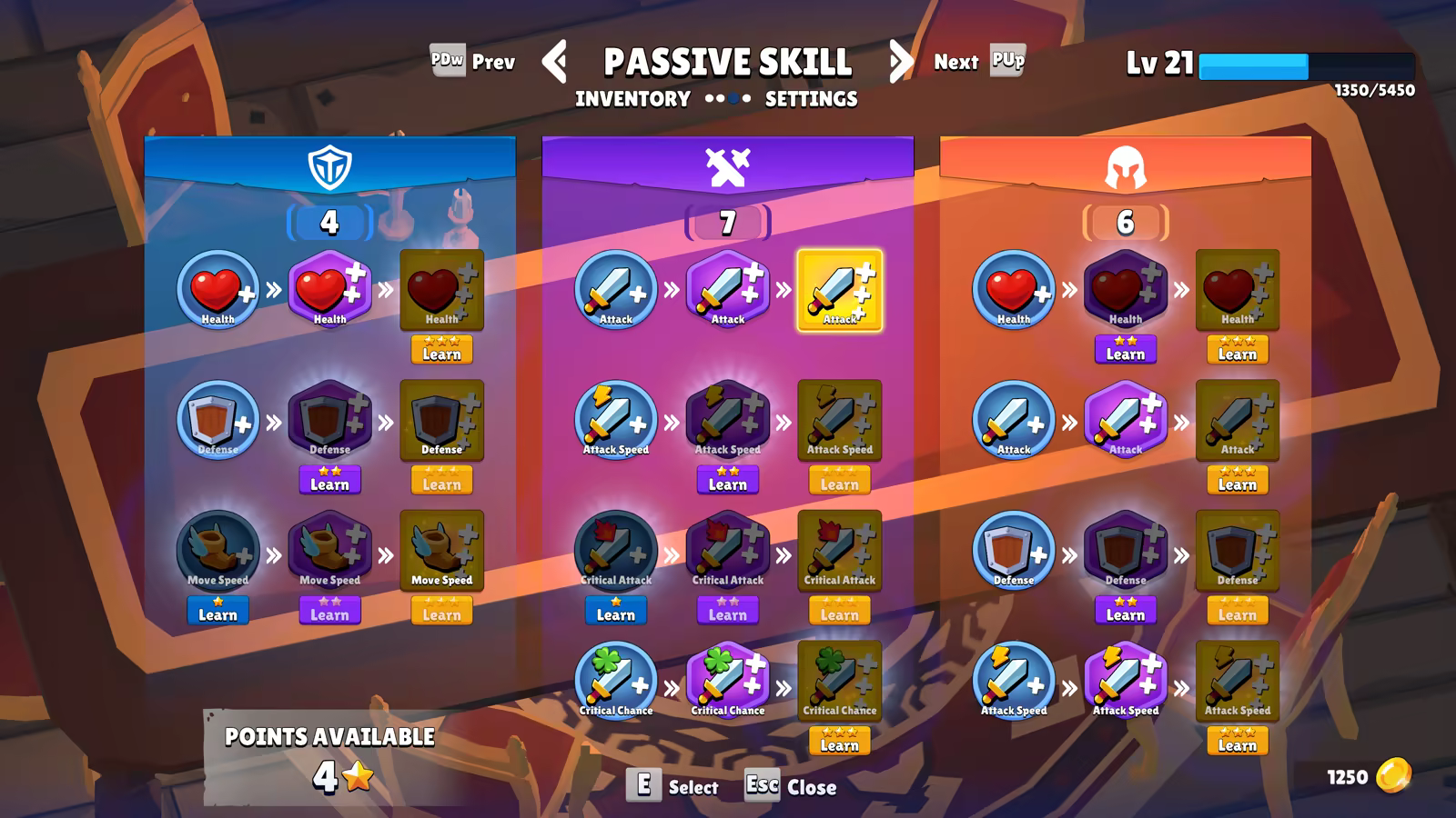Перед тем как вступить в бой, ты можешь улучшить свои пассивные способности с помощью очков опыта, которые ты заработал.