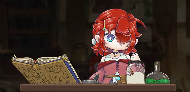 Once upon a time, under the moonlight glow, a girl named Ella opened her eyes to the world. By her side was Umbra, a loyal wolf and her dearest friend. Together, they wandered through glowing caves, towering mountains, and lush oasis pools, as Ella gathered ingredient, brew potions as an Alchemist Apprentice.