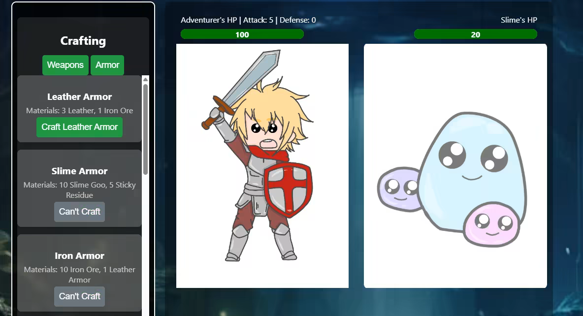 When the Little Brave Adventurer fights and gathers to his hearts content, he can take a breather and craft different types of weapons and armor so that he is better equipped to the fight to come.