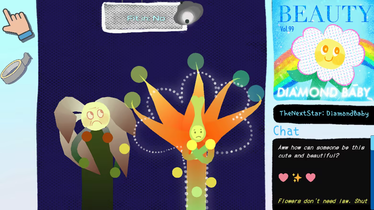 Bloomsome is a Make-over Puzzle Game that reflects upon unfair beauty standards through shaping botanical characters. It starts with a dystopian tone but in the later game, player can provide natural ASMR experience for floral clients to treat their body and soul.