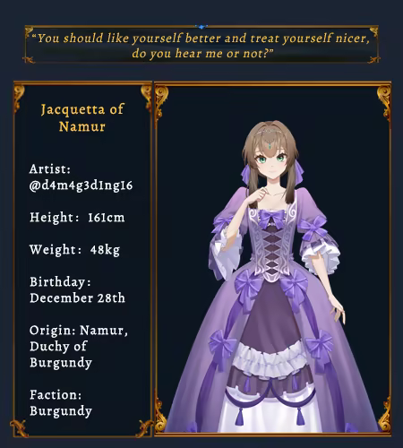 Lady-in-waiting. Noble’s daughter. The precious pearl of House Namur.